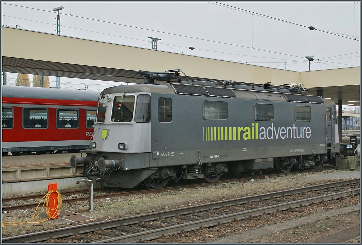 Die SBB Re 421 383 wartet in Basel Bad Bf auf einen nächsten Einsatz. Die Lok war von Mitte 2011 bis Mitte 2012 an RailAdenture vermiete. Ich fand dieses Bild in Magazin LOKI und wusste gar nicht, dass ich dieses Bild gemacht hatte...