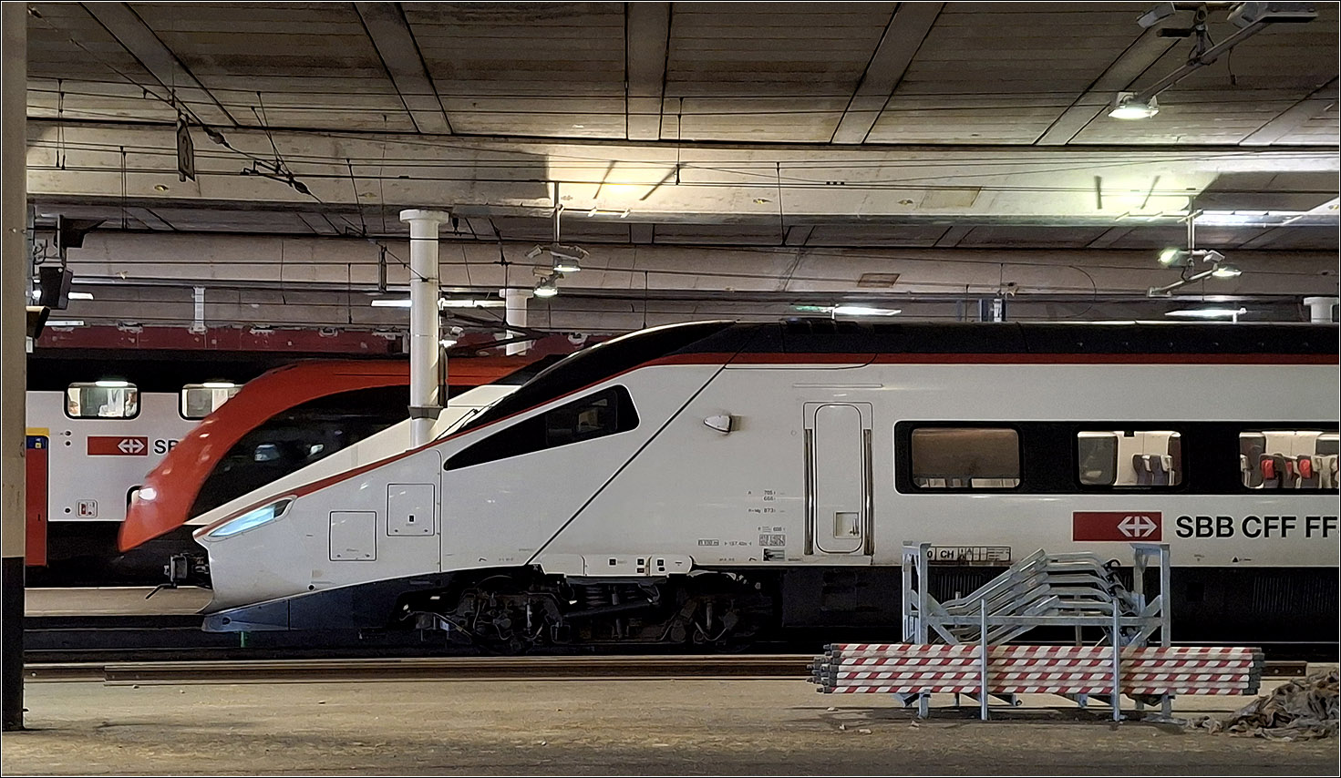 Der Tunnelbahnhof der RBS mit einem abfahrenden RE5 nach Solothurn. Die Stützen zwischen den beiden mittleren Gleisen wurde nachträglich eingebaut, vermutlich im Zusammenhang mit dem Neubau des RBS Bahnhofes in großer Tieflage, dessen vier neue Tunnelröhren unter dem alten RBS-Bahnhof hindurchführen.