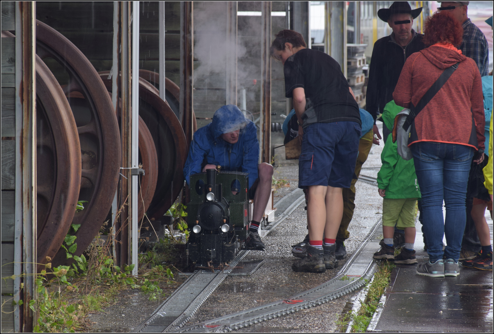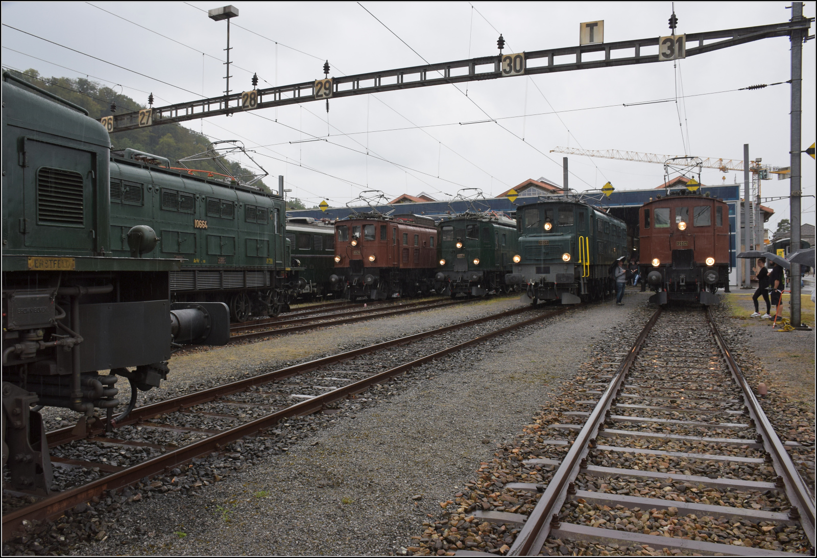 Der BCFZe 4/6 der BLS im funktionellen Design ist einer der Stars der Ausstellung. Er wurde im Jahr 1938 noch vor der Fusion an die Bern-Neuenburg-Bahn geliefert. Die verschiedenen Baustile hier am Bahnhof Olten werden gerade noch vom Bauhaus-Stil ergänzt. August 2023.