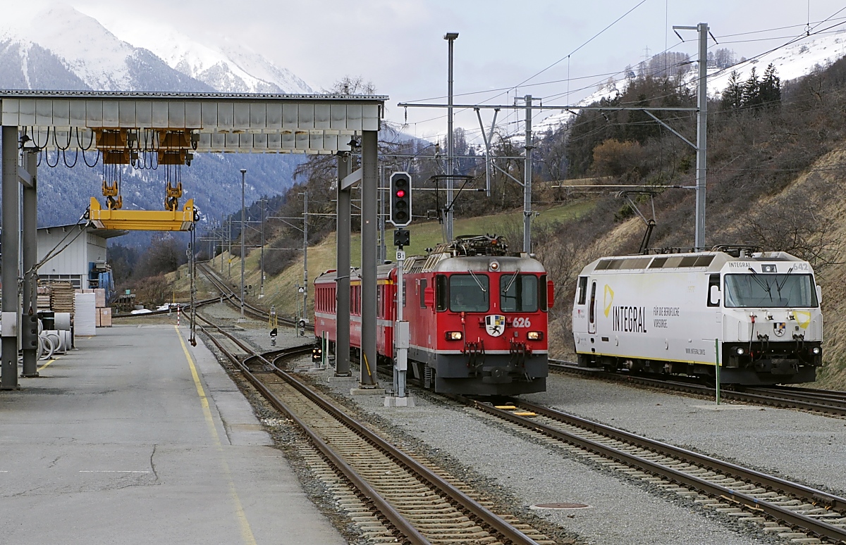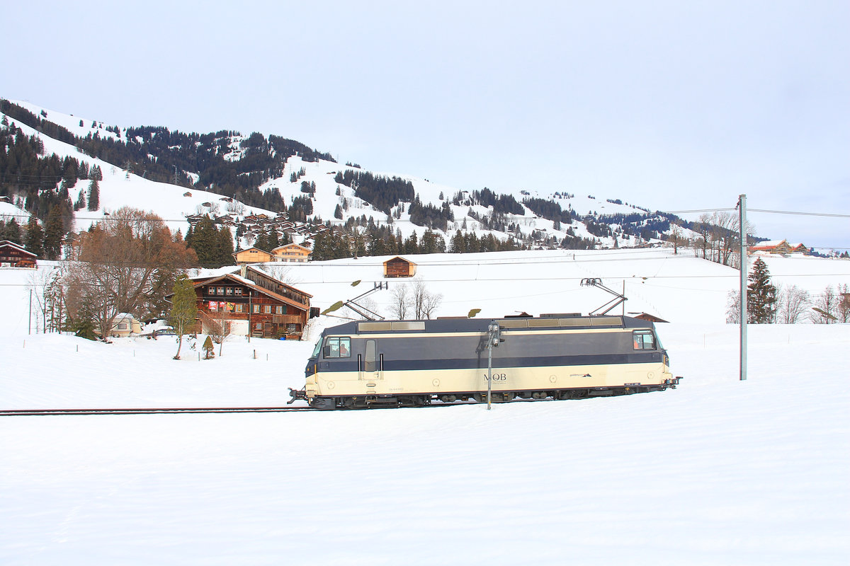 Der Regionalzug im Hintergrund wird in wenigen Minuten die in Yens wartende BAM Ge 4/4 N° 22 kreuzen.