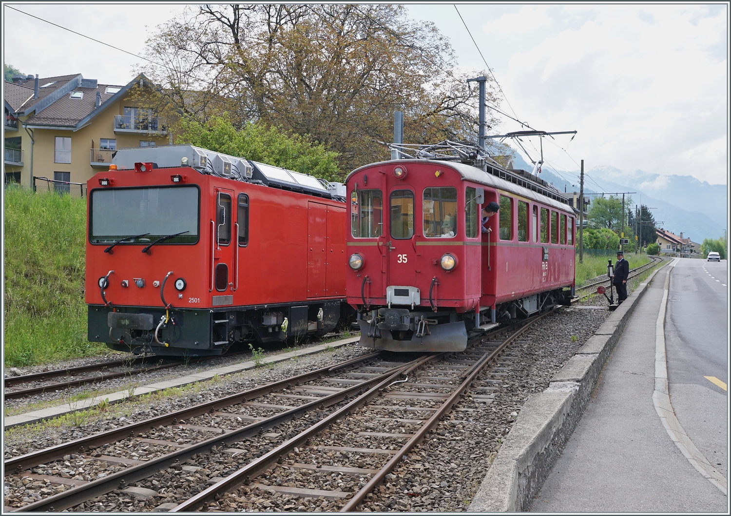 Die beiden CEV HGe 2/2 1 und 2 auf einem Bild zu sehen ist schon ziemlich selten. Nur frage ich mich besorgt, weshalb die Lok auf den nun gesperrten Gleis 4 abgestellt sind, statt wie üblich im schützenden Lokschuppen im Hintergrund.