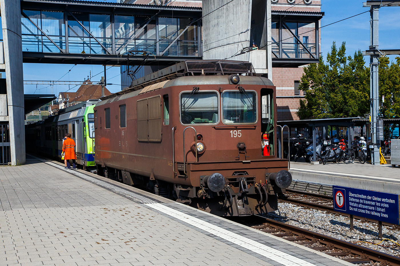 Ein eisiger Morgen in Goppenstein: BLS Re 4/4 175 wartet mit einem Autozug. Diese Lok kam 1972 in Betrieb und gehört zur Gruppe 174 - 180, mit der auch die mitbetriebenen Bahnen der BLS modernisiert wurden. 7.Januar 2021