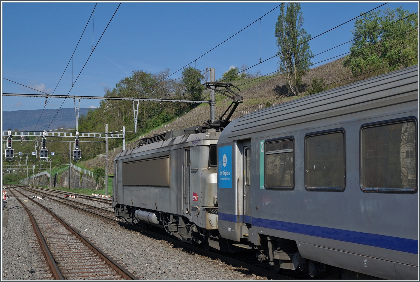 Es war einmal... da konnte man mit dem "Catalan Talgo" ohne Umsteigen von Genève bis Barcelona reisen. Die SNCF Gleichstrom BB 7281 wartet mit dem RENFE Talgo-Zug in Genève im Sommer 1987 auf die Abfahrt.