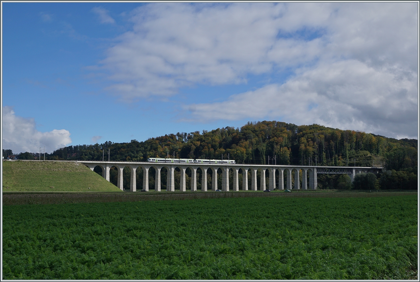 Der BLS RE 3922 von Bern nach La-Chaux-de-Fonds kurz vor Gampelen.