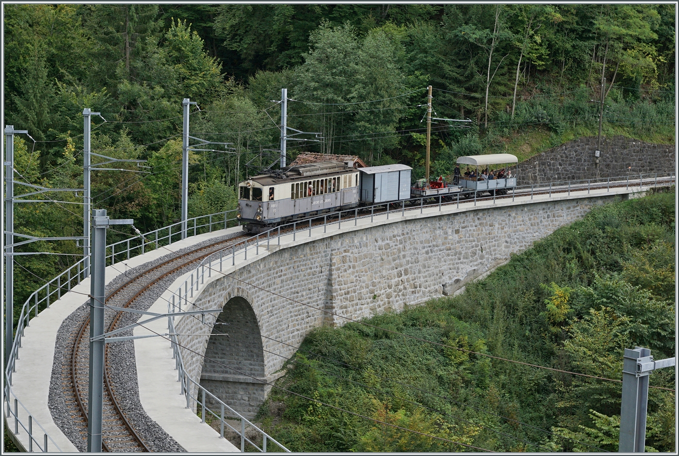 Der LLB ABFe 2/4 10 der Blonay-Chamby Bahn wartet in Blonay auf die Abfahrt nach Chaulin.
