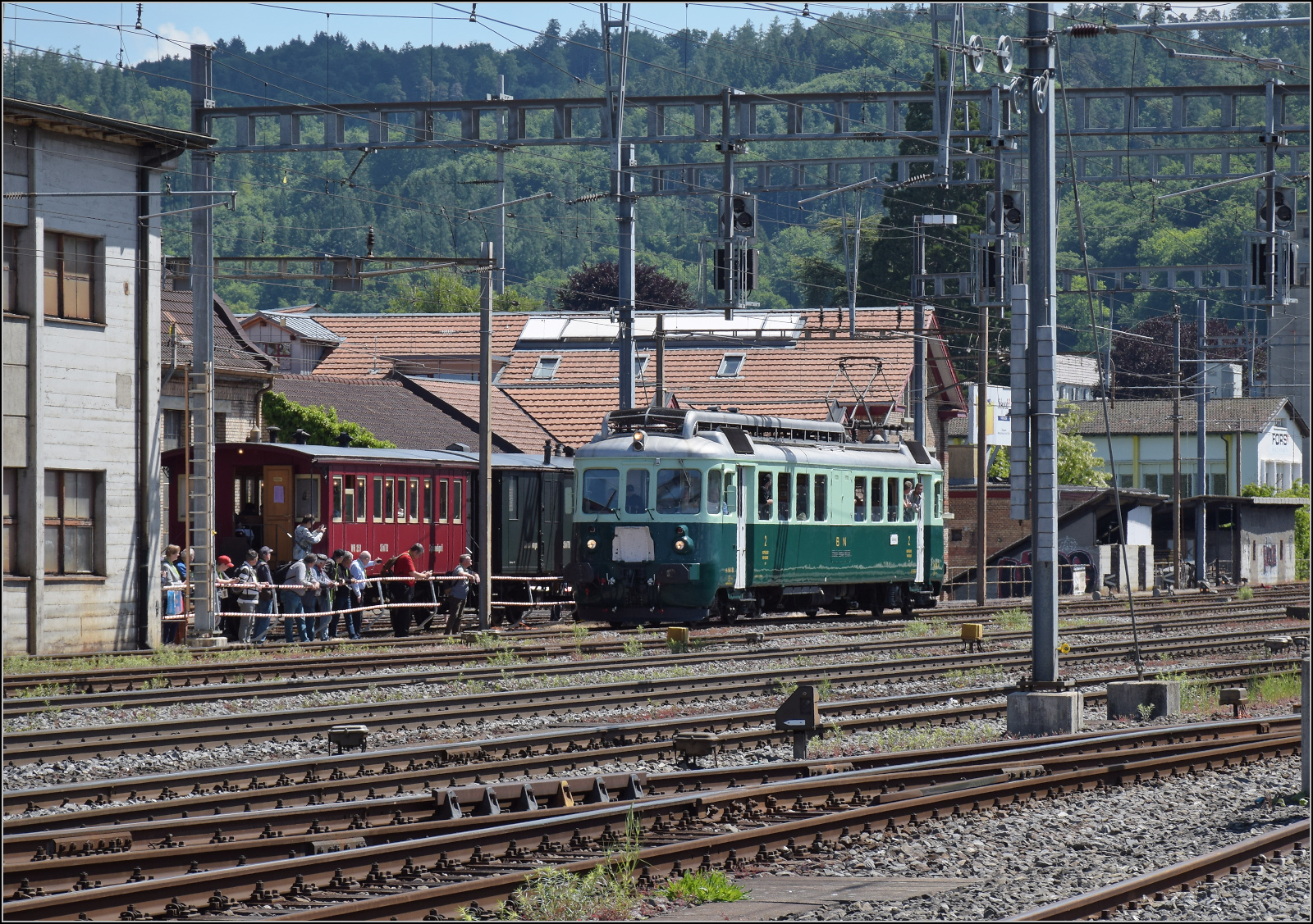 Der BLS Be 4/4 (mit der "Sicherheitslok Re 4/4) bei Nordrampenfest zum hundert jährigen Jubiläum der BLS.