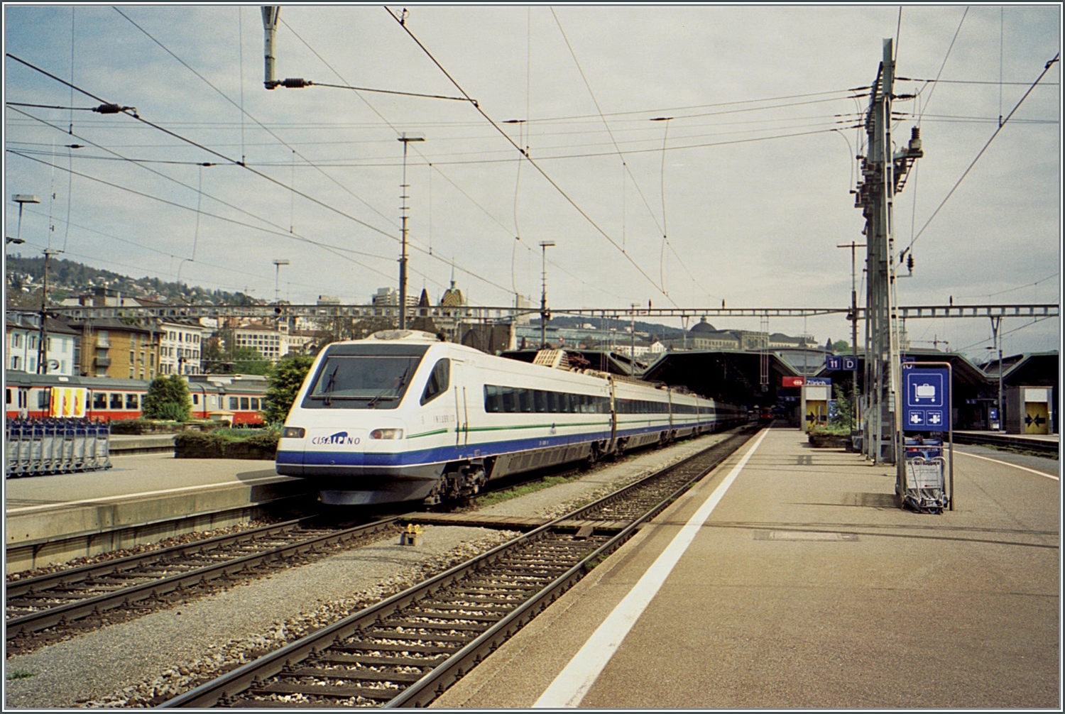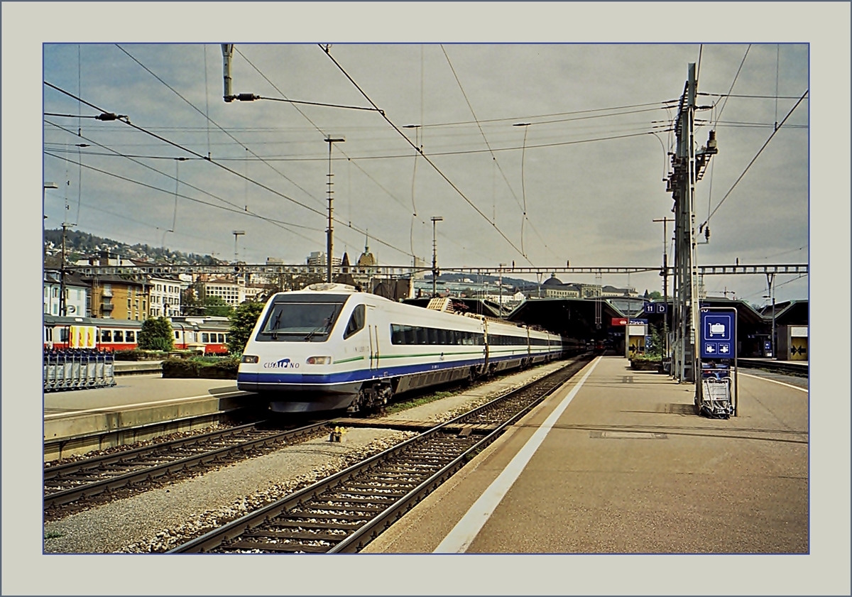 Ein FS ETR 470 als EC 17 von Zürich nach Milano bei der Durchfahrt in Lugano Paradiso.