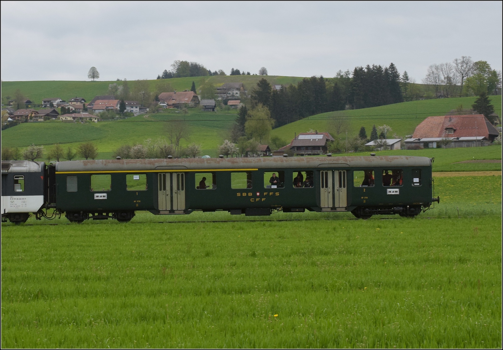 da die Fenster der 1. und der 2. Klasse die gleichen Dimensionen aufweisen, könnte es sein, dass der Zweitklassewagen erst nachträglich zu einem 1./2. Klasse Wagen umlackiert/umgestuhlt wurde. In der Regel hatten Wagen mit den zwei Einstiegen die 1. Klasse in der Mitte. Zudem waren dort die Sitzplätze in Abteilen untergebracht.
